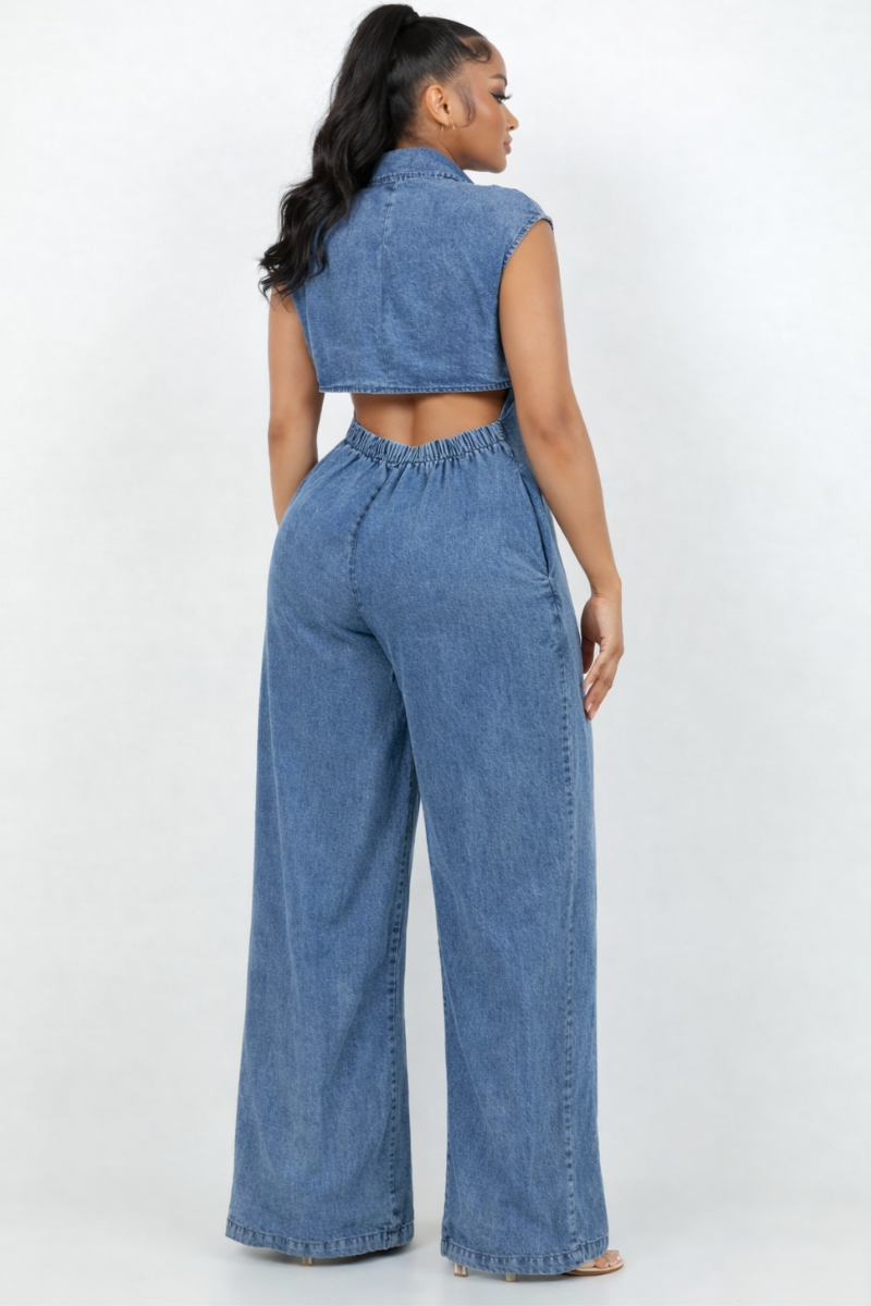Lightweight denim✨ Button-front detail✨ Wide-leg silhouette✨ Functional pockets