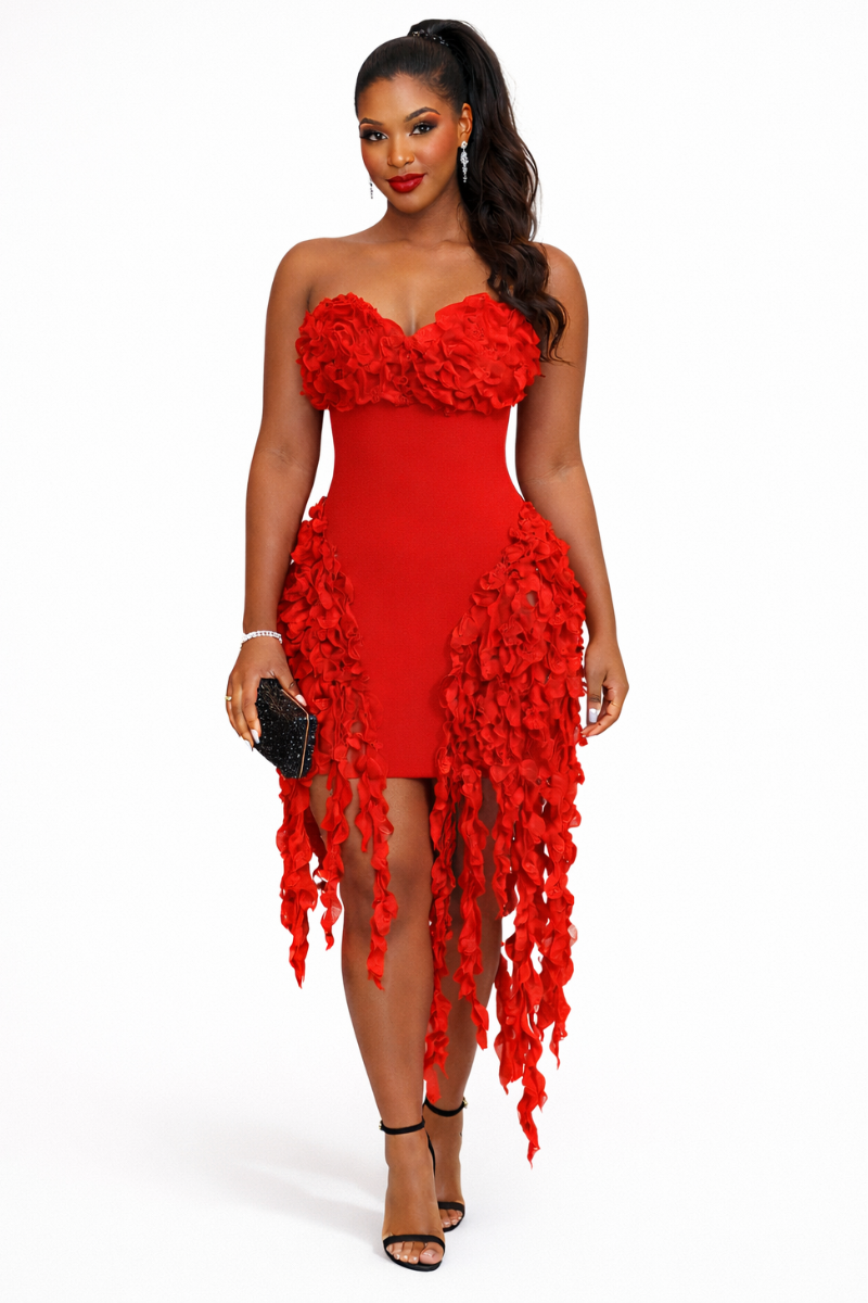 Scarlet Rosé Petal Dress