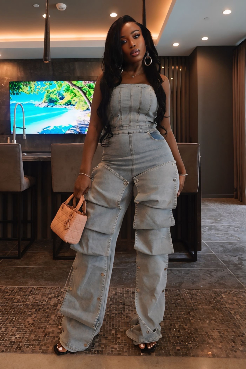 Denim Edge Cargo Jumpsuit