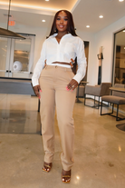 Wide waistband pants with contrast detail